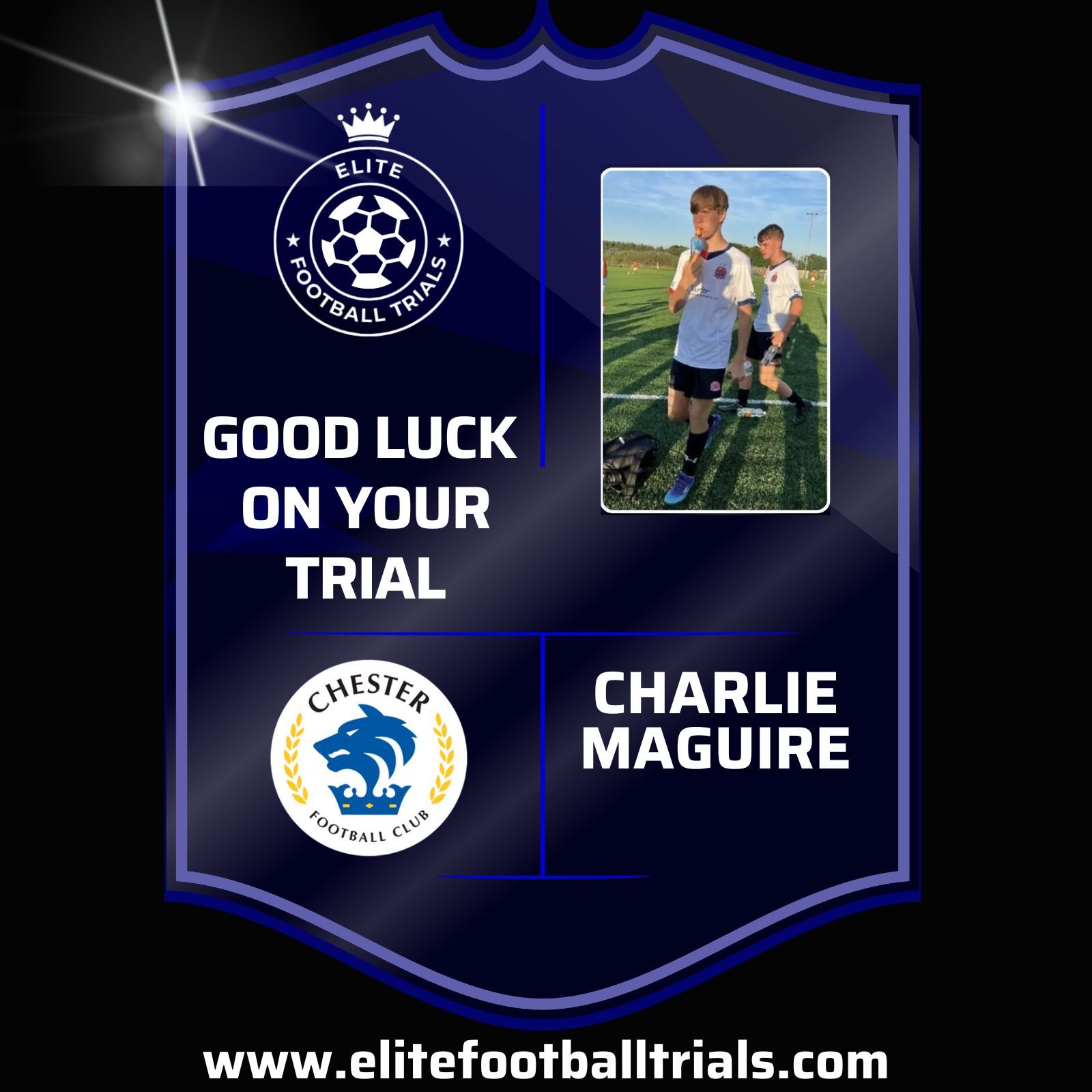 ‘Elite Football Trials I would like to thank you. Firstly in all your help and the opportunity you have given Charlie in his Football pathways. He’s only 16 and still in school and your company secured him trials with a Chester FC within their under 19s team (They play at Step 2 - National League North).