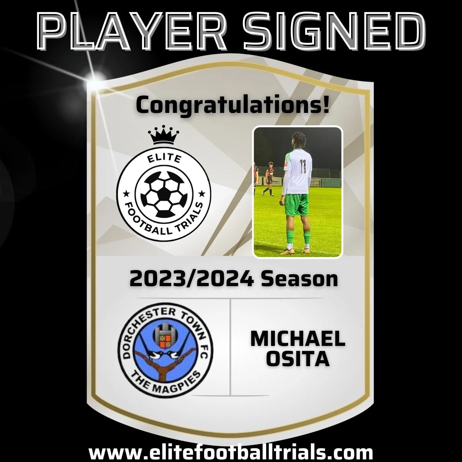 My name is Michael Osita and I started using EFT’s services around October last year. Their agents are extremely professional and helped me get signed for Dorchester Town’s U18s and also trained with their U23s throughout last season. I’ve also just recently moved to Guildford and they’ve already got me trials for a first team here which will help me improve my game drastically by playing with more experienced players so EFT guarantees what they promise because football in England is extremely competitive and they make it easy for you by finding high level teams for you around your area.